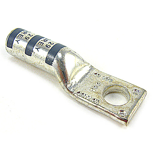 Thomas & BettsCopper One-Hole Lug, Standard Barrel, Peep Hole, Max 35kV, Wire Size #4 AWG, 3/8 Inch Bolt Size, Tin Plated, Die Code 29, Die Color Code Gray
