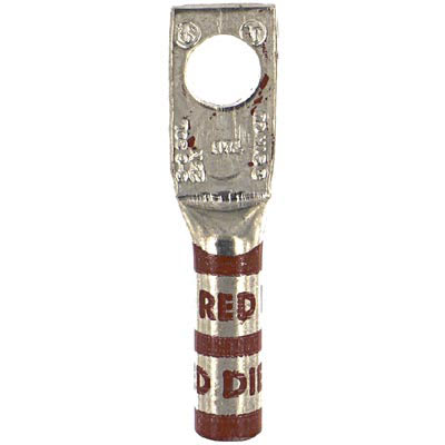 Thomas & BettsCopper One-Hole Lug, Long Barrel, Blind End, Max 35KV, Wire Size 8 AWG, 1/4 Inch Bolt Size, Tin Plated, Die Code 21, Die Color Code Red