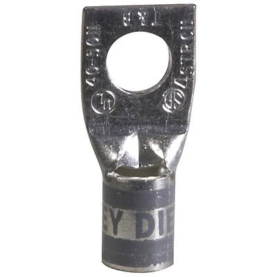 Thomas & BettsCopper One-Hole Lug, Standard Barrel, Peep Hole, Max 35kV, Wire Size #4 AWG, 5/16 Inch Bolt Size, Tin Plated, Die Code 29, Die Color Code Gray