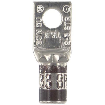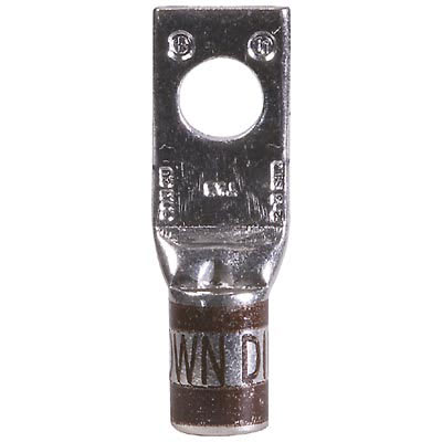 Thomas & BettsCopper One-Hole Lug, Standard Barrel, Peep Hole, Max 35kV, Wire Size #2 AWG, 1/4 Inch Bolt Size, Tin Plated, Die Code 33, Die Color Code Brown