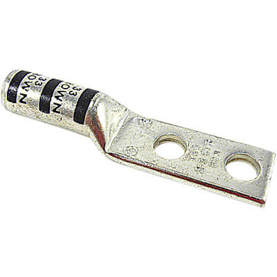 Thomas & BettsCopper Two-Hole Lug, Standard Barrel, Peep Hole, Max 35kV, Wire Size #2 AWG, 1/4 Inch Bolt Size, 5/8 Inch Hole Spacing, Tin Plated, Die Code 33, Di...